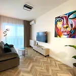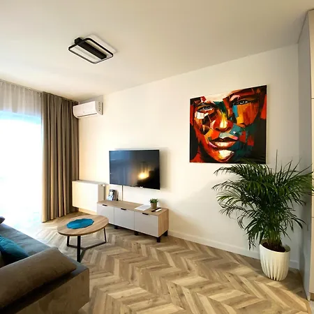 El apartamento dispone de un balcón y una zona de estar y ofrece comodidades como climatizador y TV de pantalla plana con canales vía satélite. El establecimiento ofrece mobiliario cómodo, incluyendo un sofá. Este apartamento dispone de 1 dormitorio con almohadas de plumón hipoalergénicas. El alojamiento está equipado con 1 baño con un inodoro separado de la ducha y una ducha. Además, hay toallas de baño.